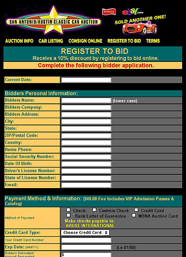 devoted to just one sale event with detailed forms for auction