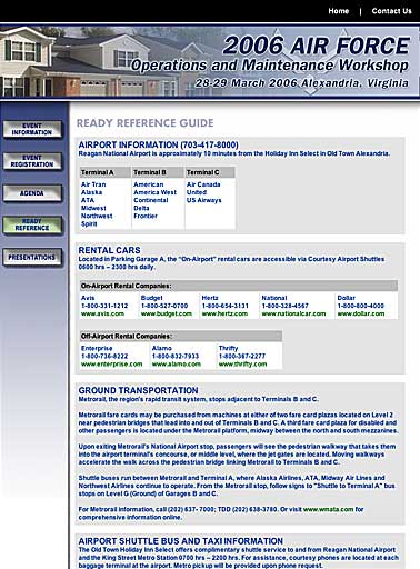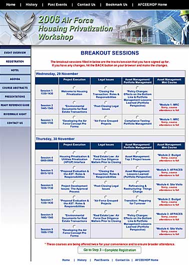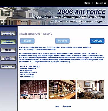 Created websites thruout 2006 for Booz Allen Hamilton. Sites were for events in various cities and included multiple step registration form pages. Events were for the private sector and contract work for Air Force locations in the United States.